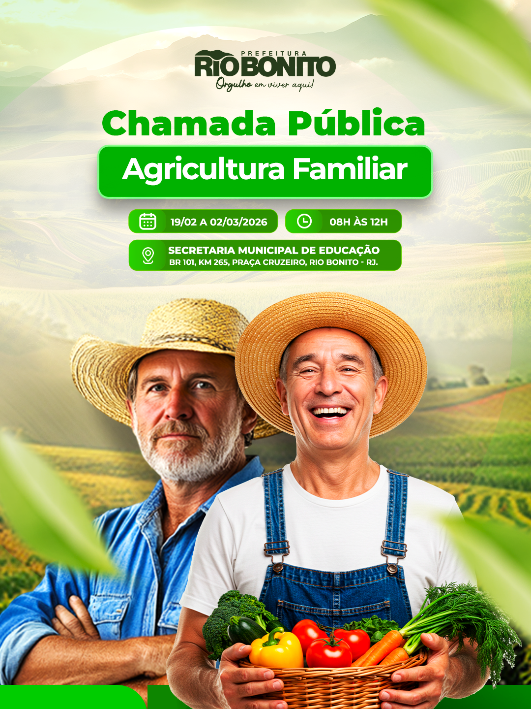 A secretaria de Educação está realizando uma Chamada Pública para aquisição de gêneros alimentícios da...