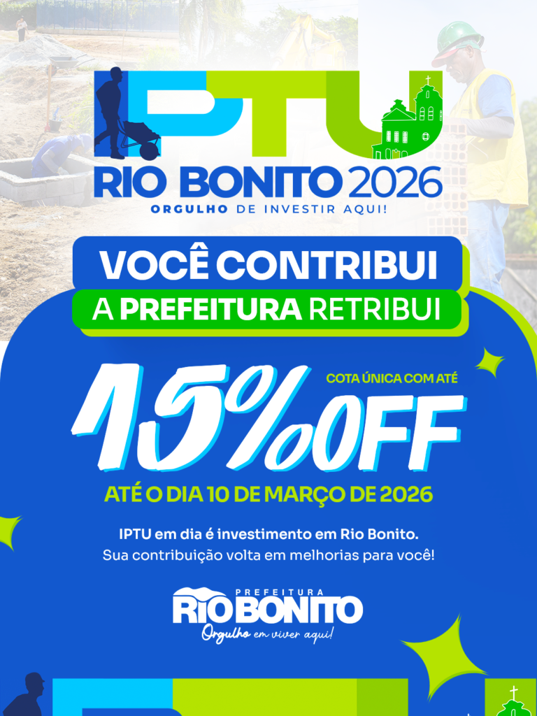 A prefeitura de Rio Bonito prorrogou o pagamento do Imposto Predial Territorial Urbano (IPTU). As guias de recolhimento do Imposto também já estão liberadas. O imposto pode ser pago à vista (cota única) até o dia 10 de março, com desconto de 15%, para valores relativos à propriedade. Já para pagamento em cota único com […]
