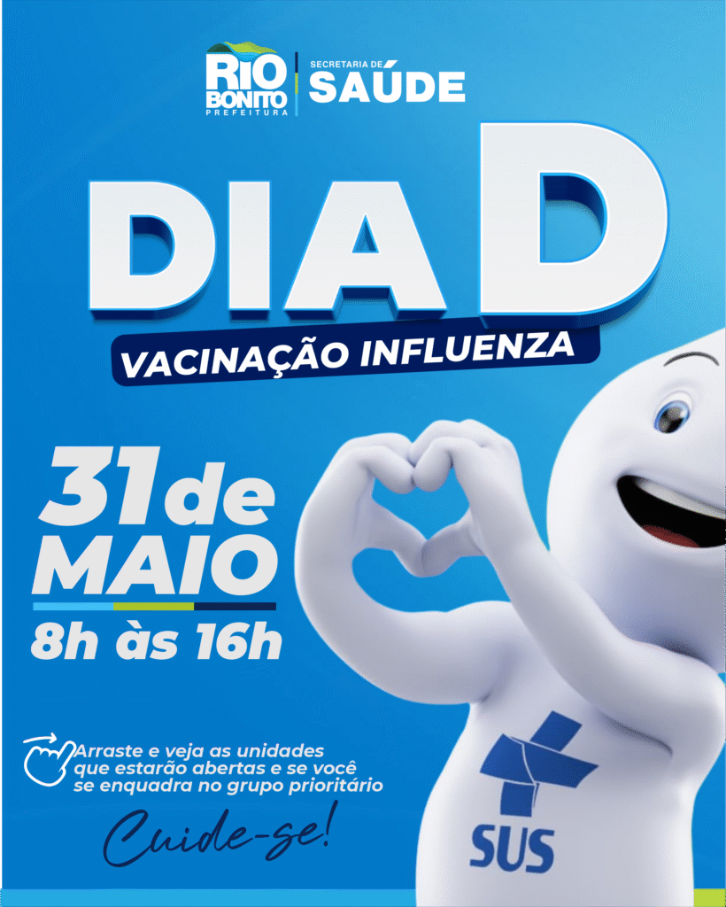 Se tem um compromisso que vale a pena marcar no calendário, é o Dia D da Vacinação, que acontece neste sábado, 31 de maio, em Rio Bonito. A campanha tem como foco proteger os grupos prioritários contra a gripe (Influenza) e garantir que ninguém fique de fora quando o assunto é saúde e prevenção. E […]