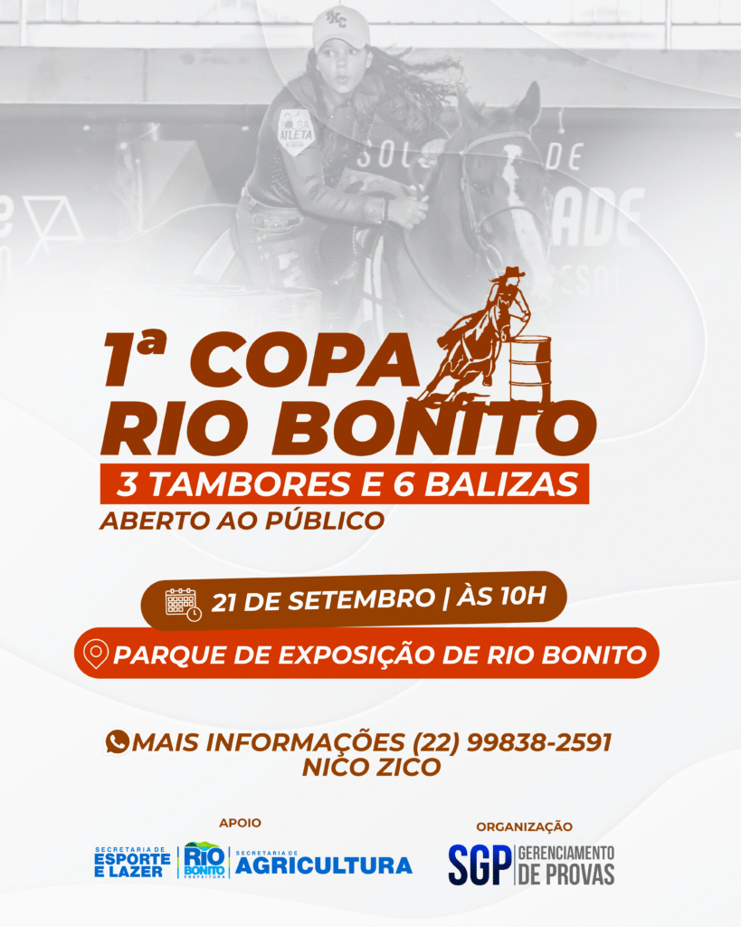 A 1ª Copa Rio Bonito de 3 Tambores e 6 balizas, foi transferida. O evento ligado a pecuária que, inicialmente, seria no dia 14 de setembro, será realizada no dia 21 de setembro, no Parque de Exposições da cidade, com entrada gratuita. Emoção, velocidade e adrenalina são alguns dos ingredientes que devem garantir o sucesso do evento, e vai movimentar a cidade e região. As inscrições estão e podem ser feitas no site: www.sgpsistema.com. O evento deve reunir competidores de vários municípios do Estado do Rio, como Macaé, Casimiro de Abreu, Conceição de Macabu, Carapebus, Rio das Ostras, São Pedro da Aldeia, Araruama, Saquarema, Rio Bonito, Maricá, Rio de Janeiro, Macuco, Santo Antônio de Pádua, Campos dos Goytacazes, entre outros.
