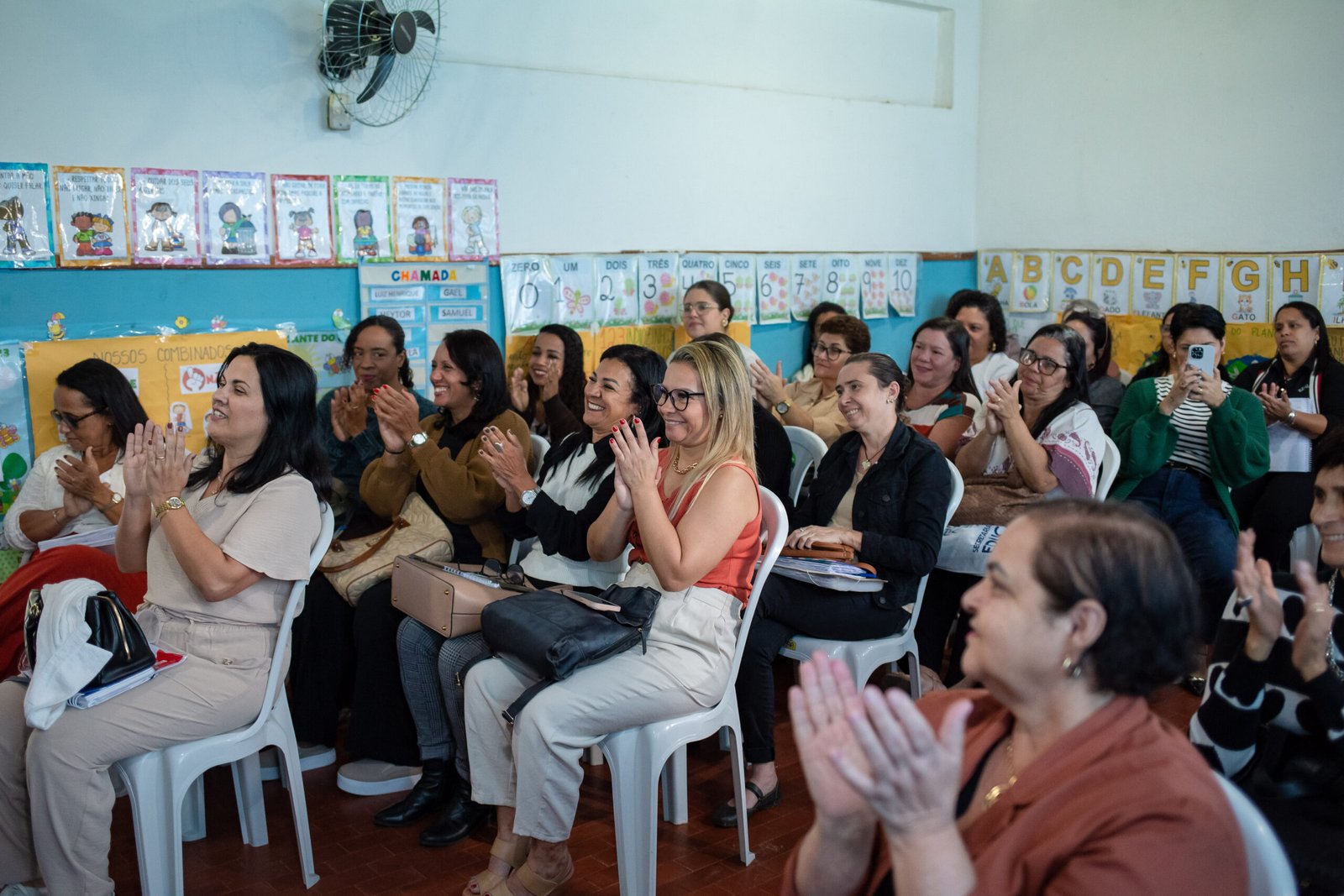 A reunião foi aberta com apresentação musical de alunos da Unidade, contou com a presença da secretária de Educação, Mônica Magrini, e do subsecretário Sérgio Magalhães, que trouxeram pautas como a organização dos eventos culturais, entre eles o tradicional 7 de Setembro, além do planejamento do uso de recursos nas escolas e novidades que envolvem diretamente os alunos e profissionais da educação.