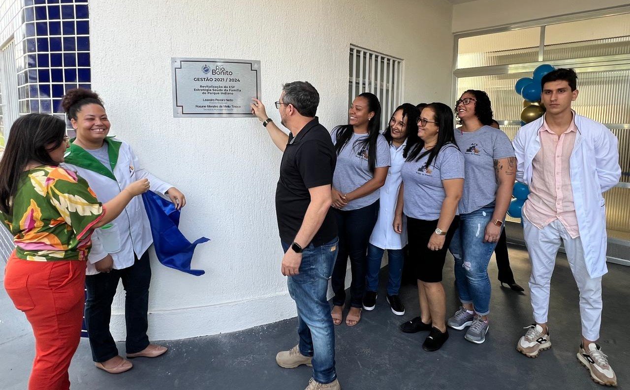 O prefeito Leandro Peixe e a secretária de Saúde, Rosane Mello Tinoco, participaram na sexta-feira (28) da cerimônia de entrega das obras de revitalização e reabertura do ESF Parque Indiano. A unidade ganhou grades e vidros nas janelas, reforma do telhado, cerâmica nas paredes das salas de vacinas, curativos, nos consultórios médicos e odontológicos e também na cozinha, que foi ampliada, além de pintura geral e reforma da parte elétrica e hidráulica, entre outros. A cerimônia de entrega das obras contou com a presença vereadores, secretários municipais, funcionários e moradores locais.