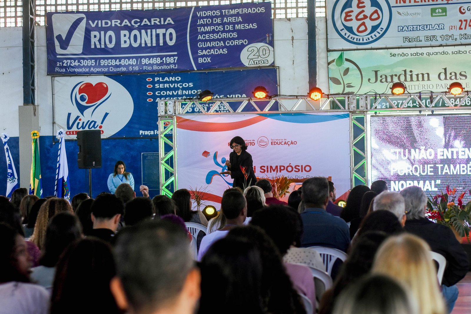 Diversos profissionais da educação do município de Rio Bonito marcaram presença na segunda edição do Simpósio de Educação, realizado no Ginásio Poliesportivo Antonio Figueiredo, do Rio Bonito Atlético Clube. O evento é uma realização da Secretaria Municipal de Educação de Rio Bonito e teve como tema “Entrelaços de uma Educação integral visando o ser humano em sua completude”.