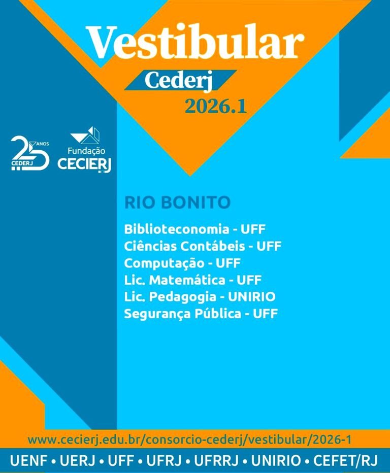 O Vestibular Cederj está com inscrições abertas até o dia 30 de outubro, para o primeiro semestre de 2026. São 7.355 vagas em 16 cursos