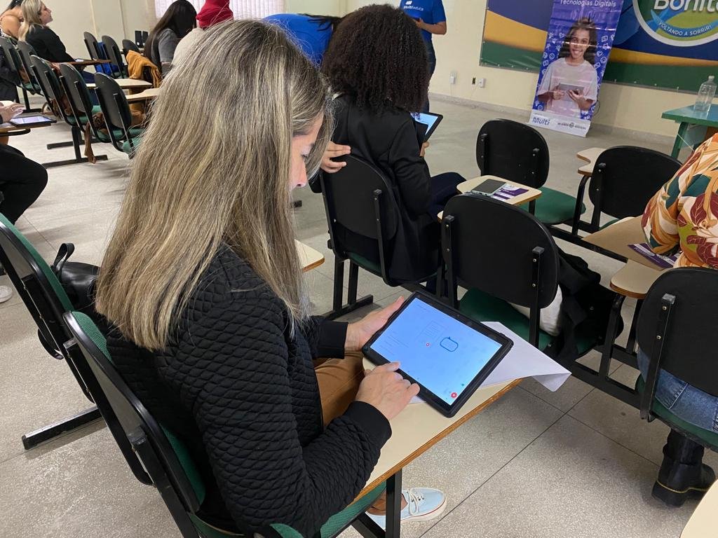 Durante a oficina, foram apresentados recursos e aplicativos disponíveis para o desenvolvimento pedagógicos dos alunos em sala de aula. O uso do tablet será um importante mediador da aprendizagem ao tornar o ambiente escolar mais atrativo, com aulas mais produtivas, flexíveis e dinâmicas.