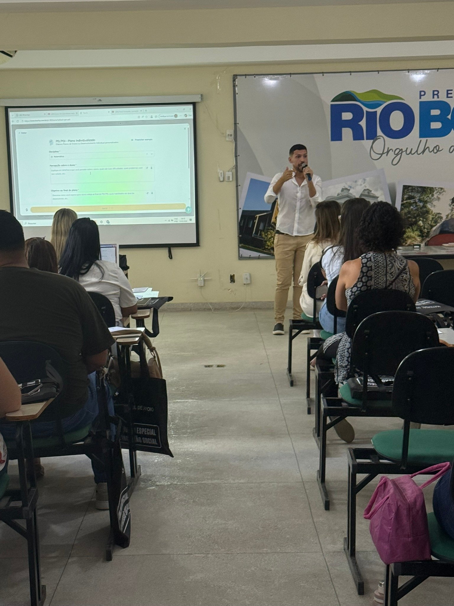 Profissionais da rede municipal de ensino de Rio Bonito participaram, nesta sexta-feira, de uma formação voltada ao fortalecimento das práticas educacionais e de inclusão nas escolas. O encontro aconteceu no auditório da Prefeitura e reuniu educadores, profissionais da área de inclusão e representantes da Secretaria Municipal de Educação.