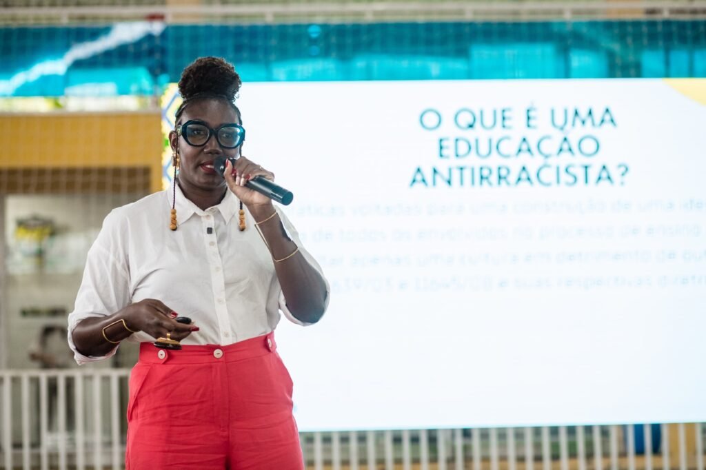 No período da tarde, a programação seguiu com novas apresentações e a aguardada palestra de Luiza Mandela, considerada a maior referência em Letramento Racial no Brasil. Professora da rede municipal, pedagoga, psicopedagoga, escritora e pesquisadora com formação internacional pela Universidade de Harvard, Luiza abordou o letramento racial como um processo educativo fundamental para identificar e combater o racismo estrutural, promovendo atitudes antirracistas no ambiente escolar e na sociedade.